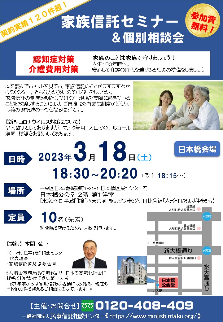 2018年7月以降のセミナー実績は、一般社団法人民事信託相談センターの